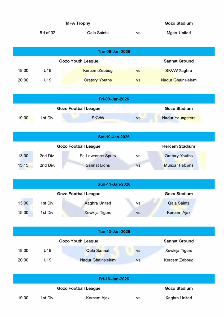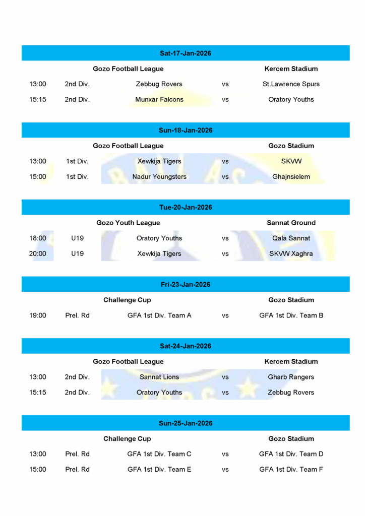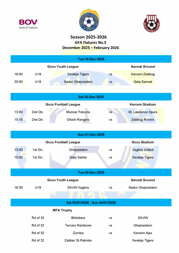 The GFA has published the fifth fixture for the 2025-2026 Season