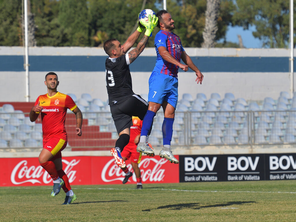 8’ Zebbug goalkeeper Angelo Brognoli came off his line promptly to block a dangerous attempt before Kenneth Mizzi could reach the ball.