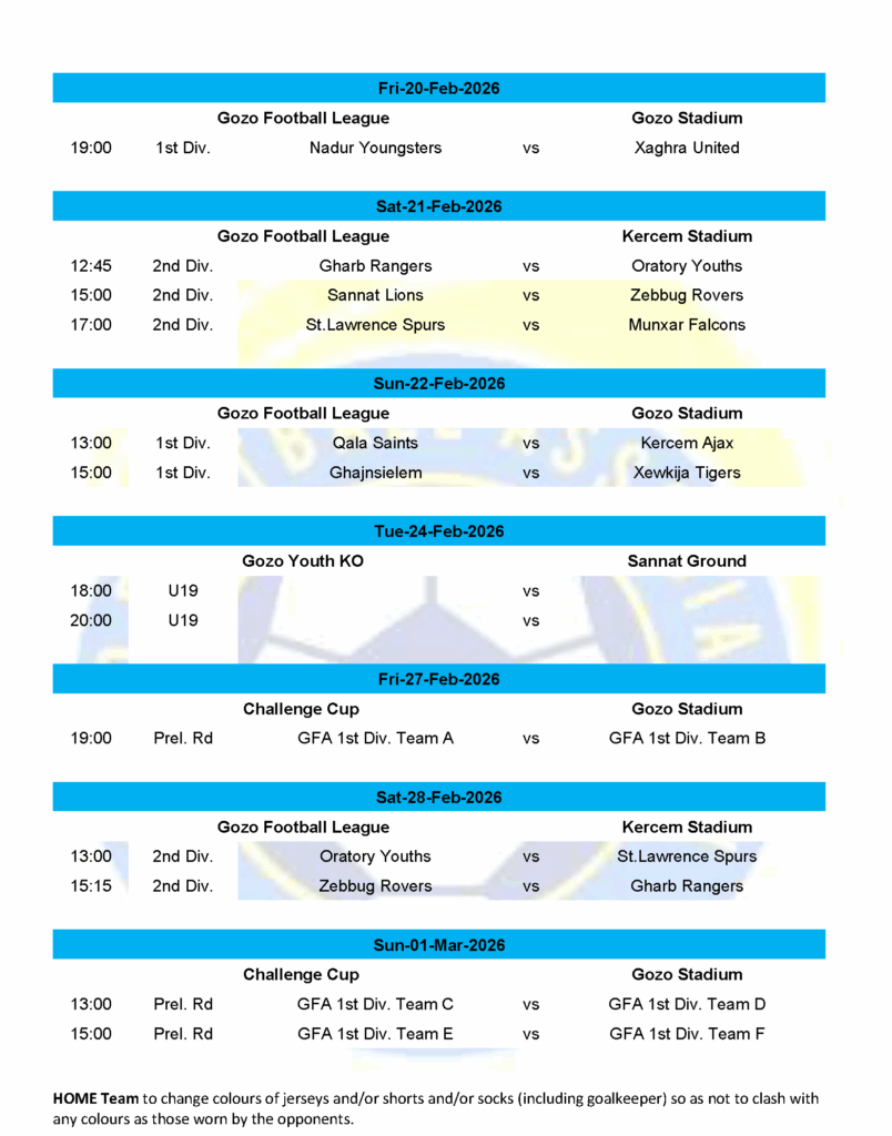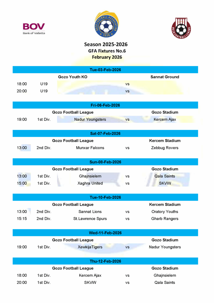 The GFA has published the sixth fixture for the 2025-2026 Season