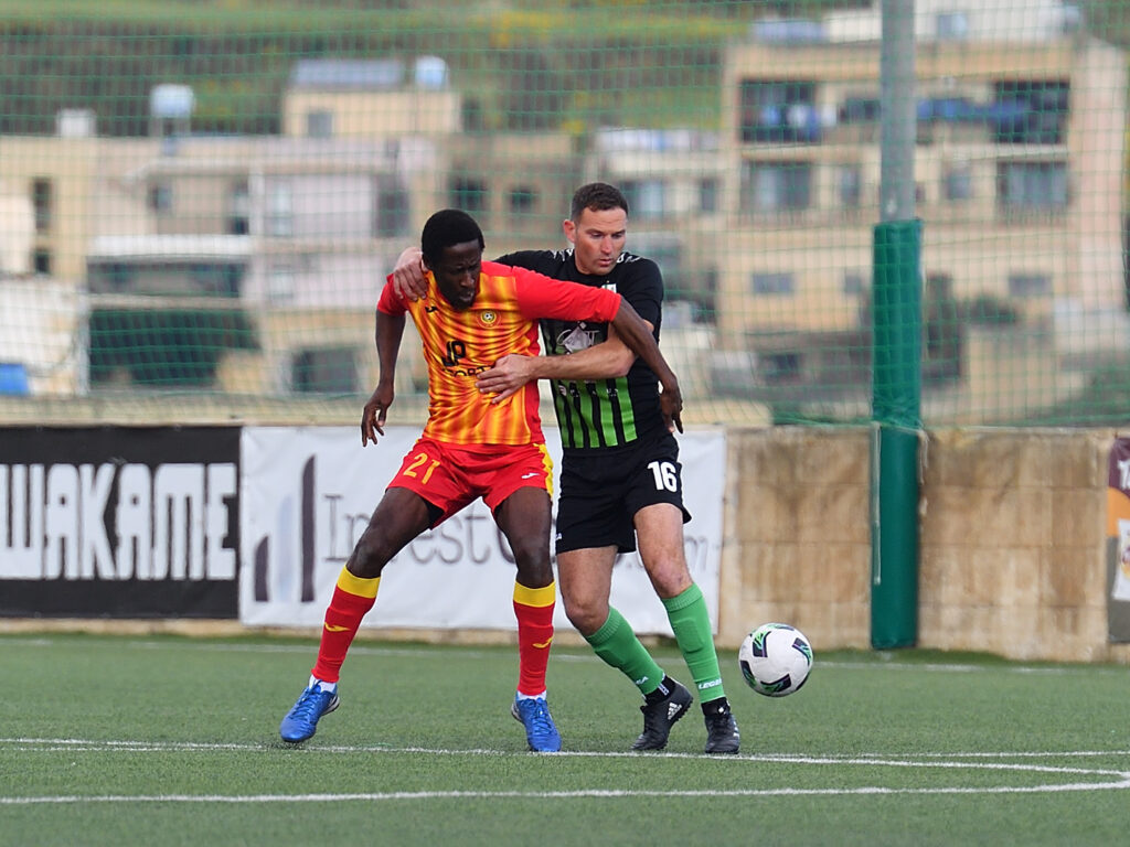 19’ Sannat goalkeeper Lorjean Xuereb produced an important save, blocking a header by Gabriel Debrincat following a cross from Ebube Raph Okpokwu.